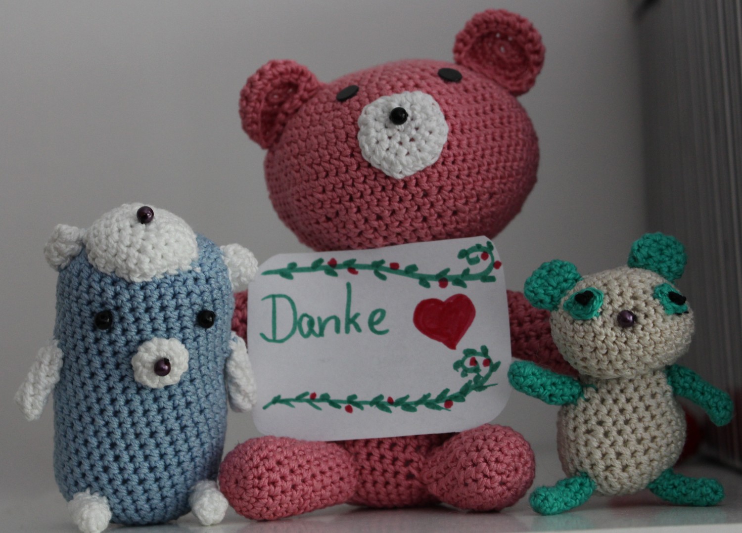 Du hast da schon wieder so süße Plüsch-Strick-Handwerkskunst-Tierchen. *-*