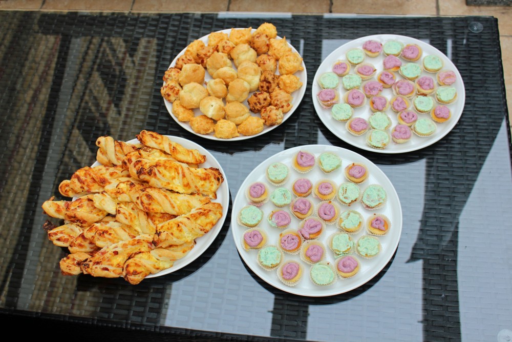 Wir haben 50 mini Cup Cakes, deftige Windebeutel und Blätterteig stangen gemacht.